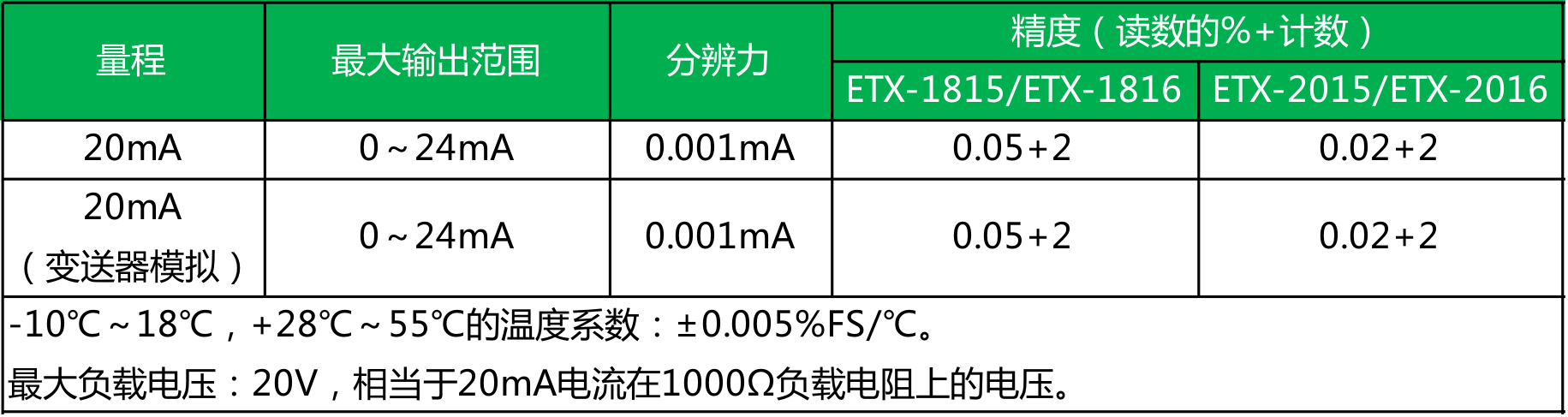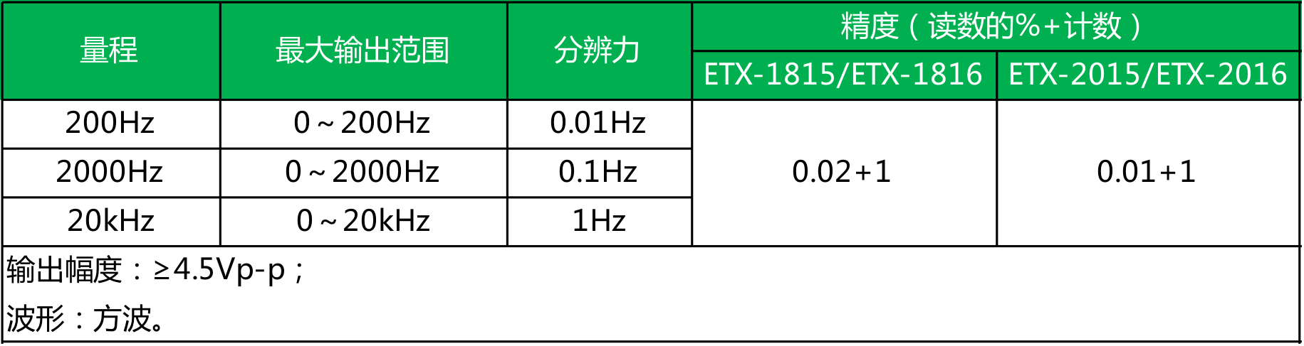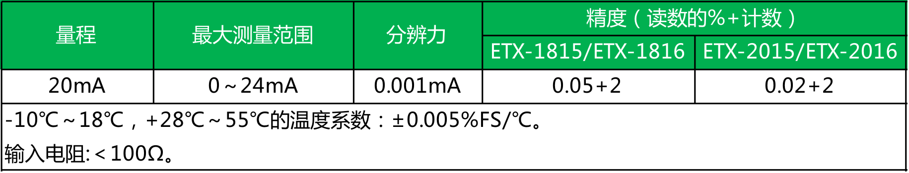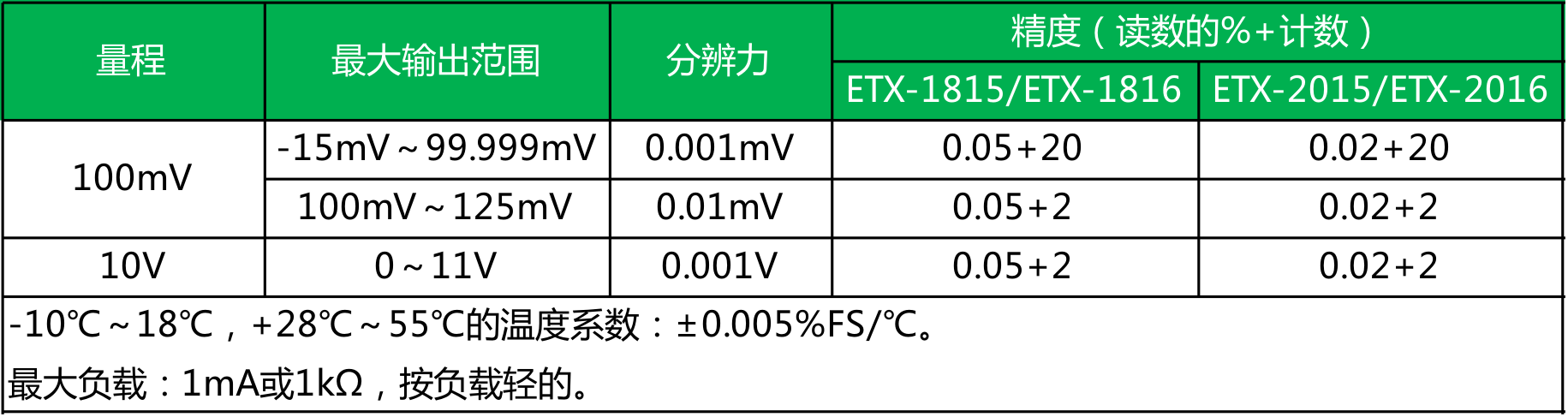 ● ETX-2015/2016型 精度为0.02%;ETX-1815/1816型 精度为0.05%;